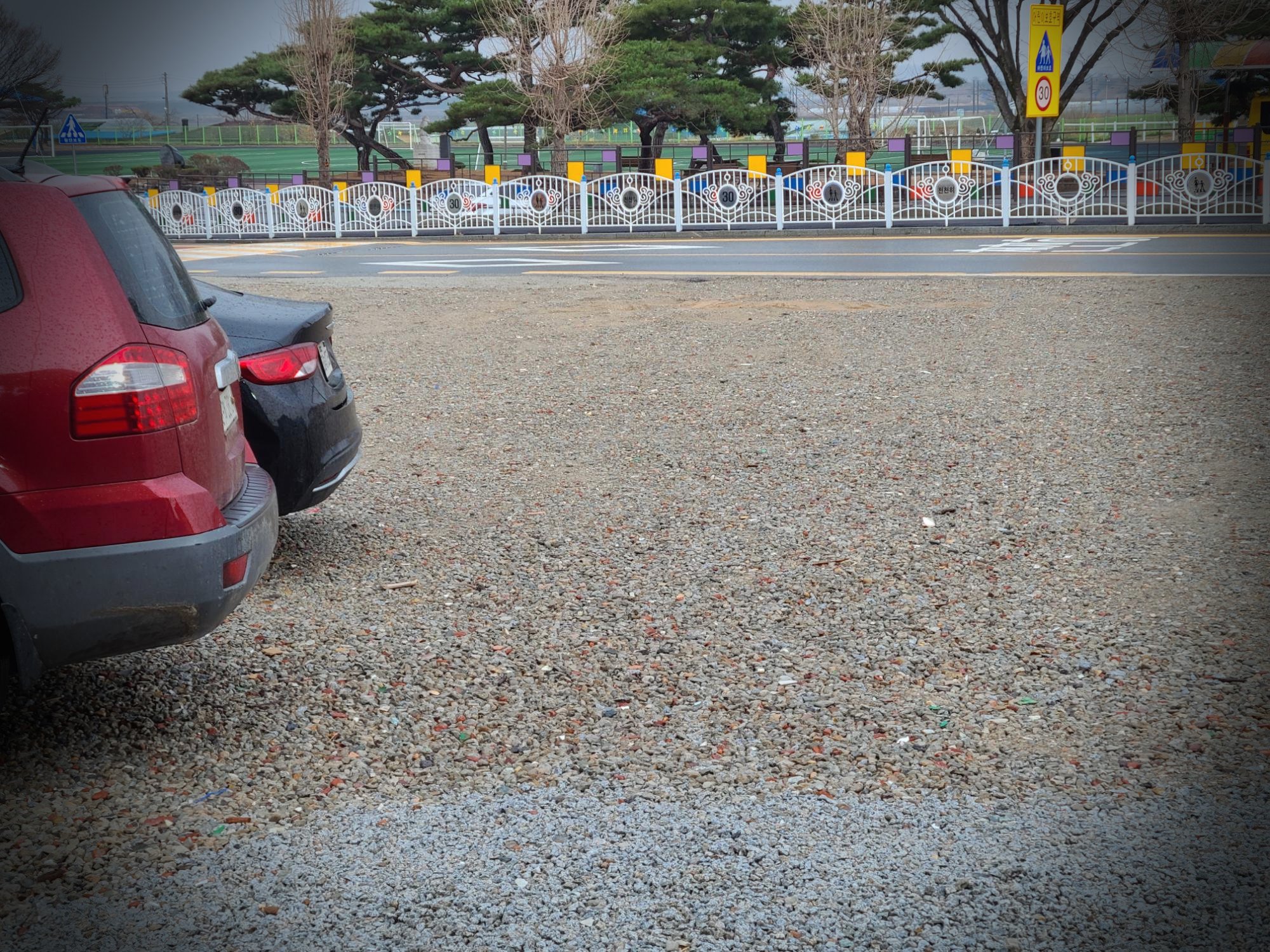 주차장도 넓직하고 바로 맞은편에 채운초등학교의 아름다운 교정이 보인다.